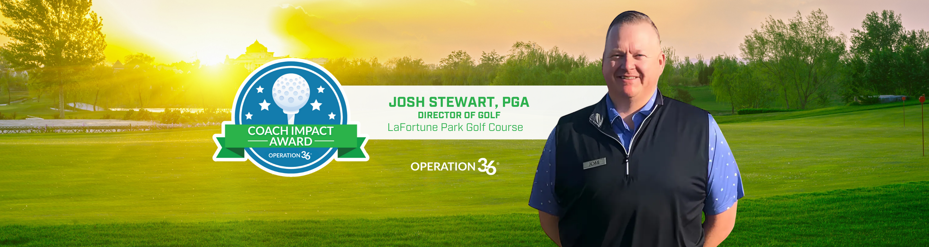 Coach Josh Stewart, PGA, of LaFortune Park Golf Course in Tulsa, OK, has been named the recipient of the Operation 36 Coach Impact Award for June! What makes this award especially meaningful is that it was Josh’s own students and their families who nominated him.